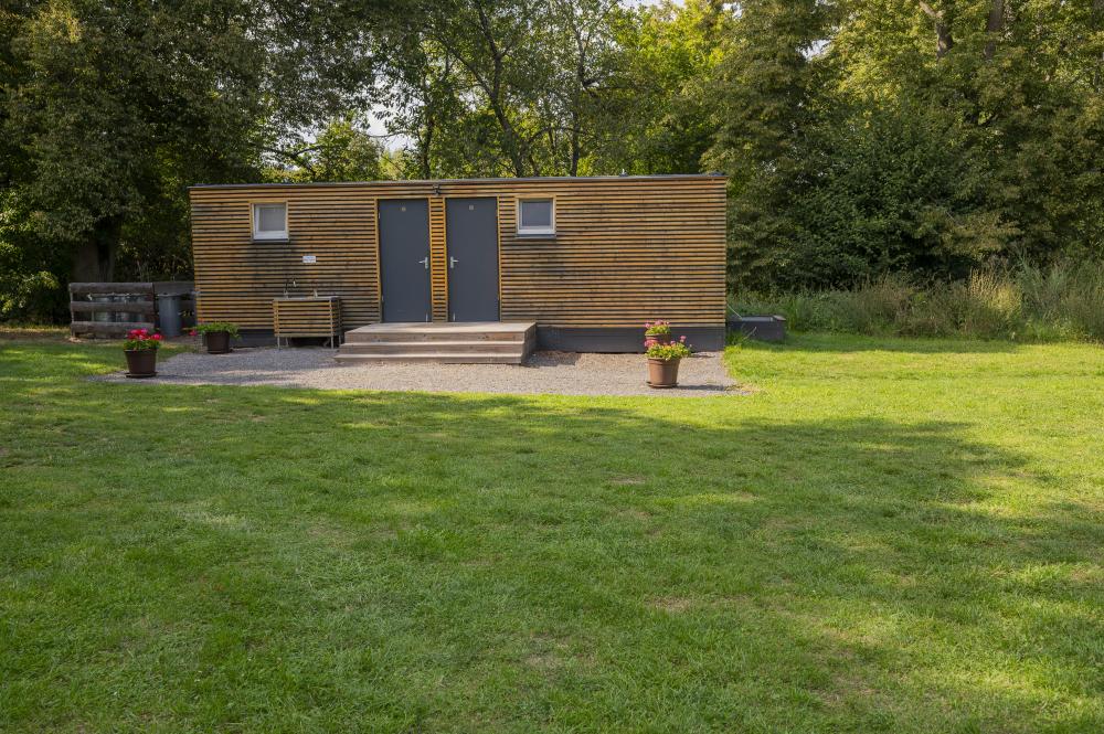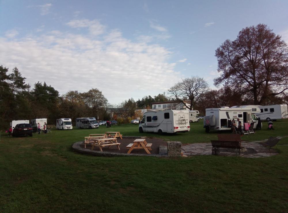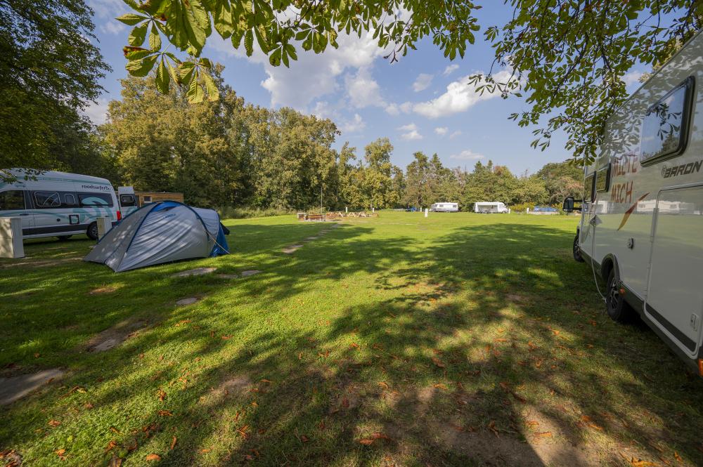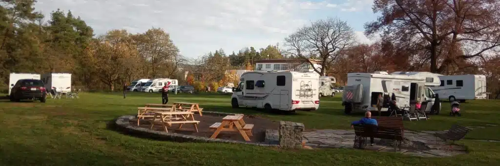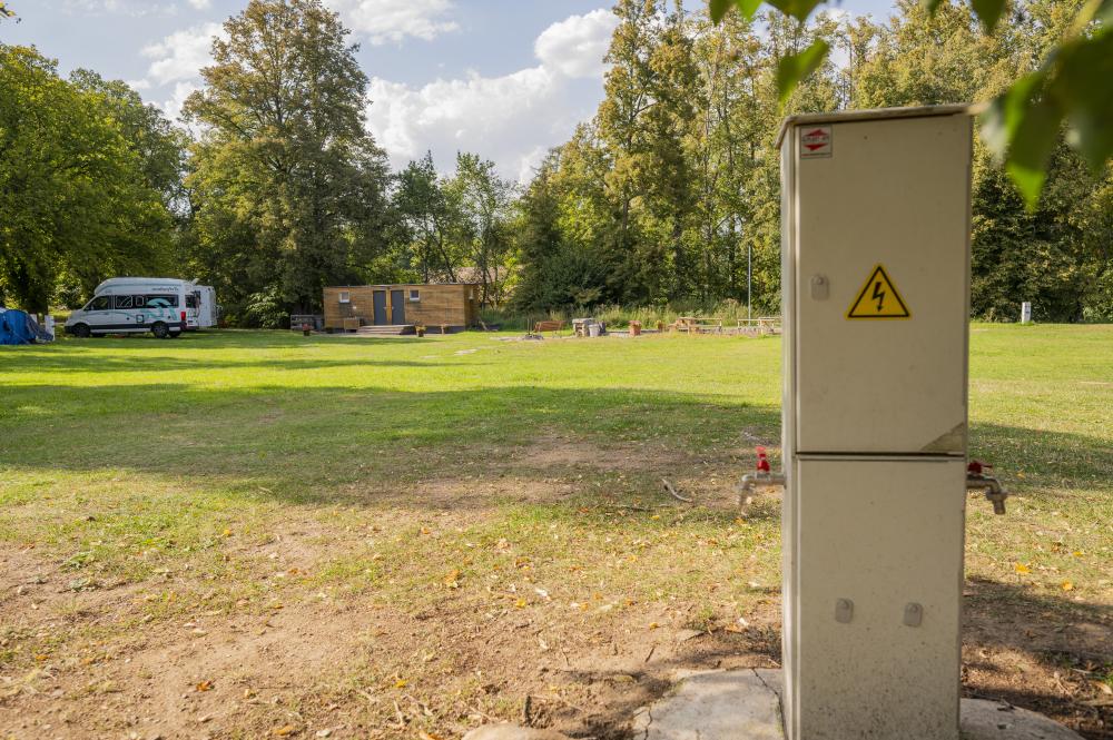 Součástí stellplatzu jsou toalety a sprchy, pitná voda je samozřejmostí.