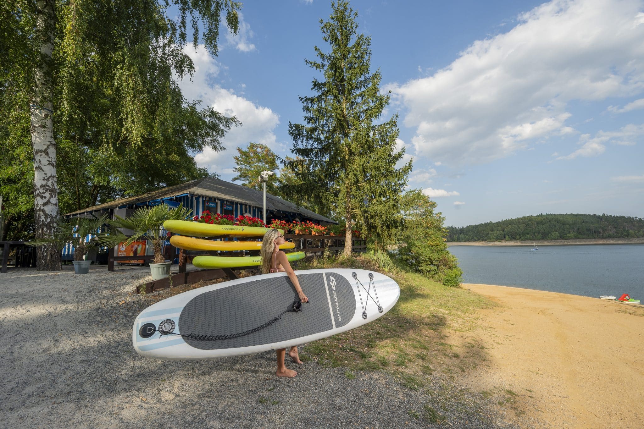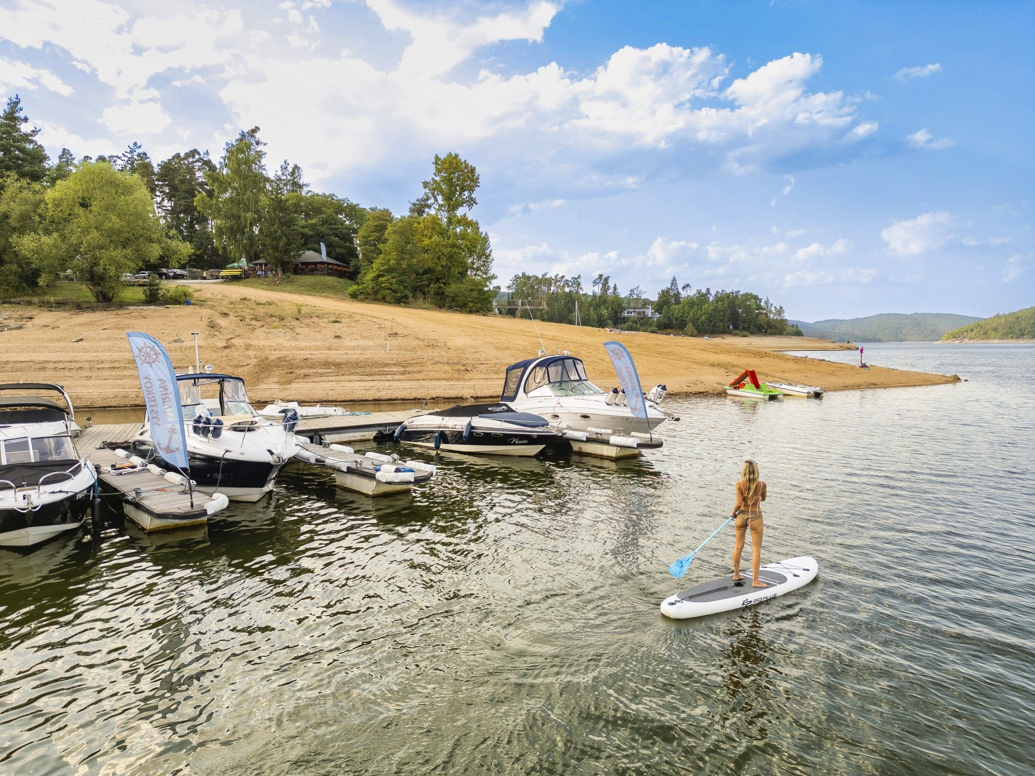K dispozici jsou paddleboardy, šlapadla ale i vodní lyže či jízda na vodním banánu.