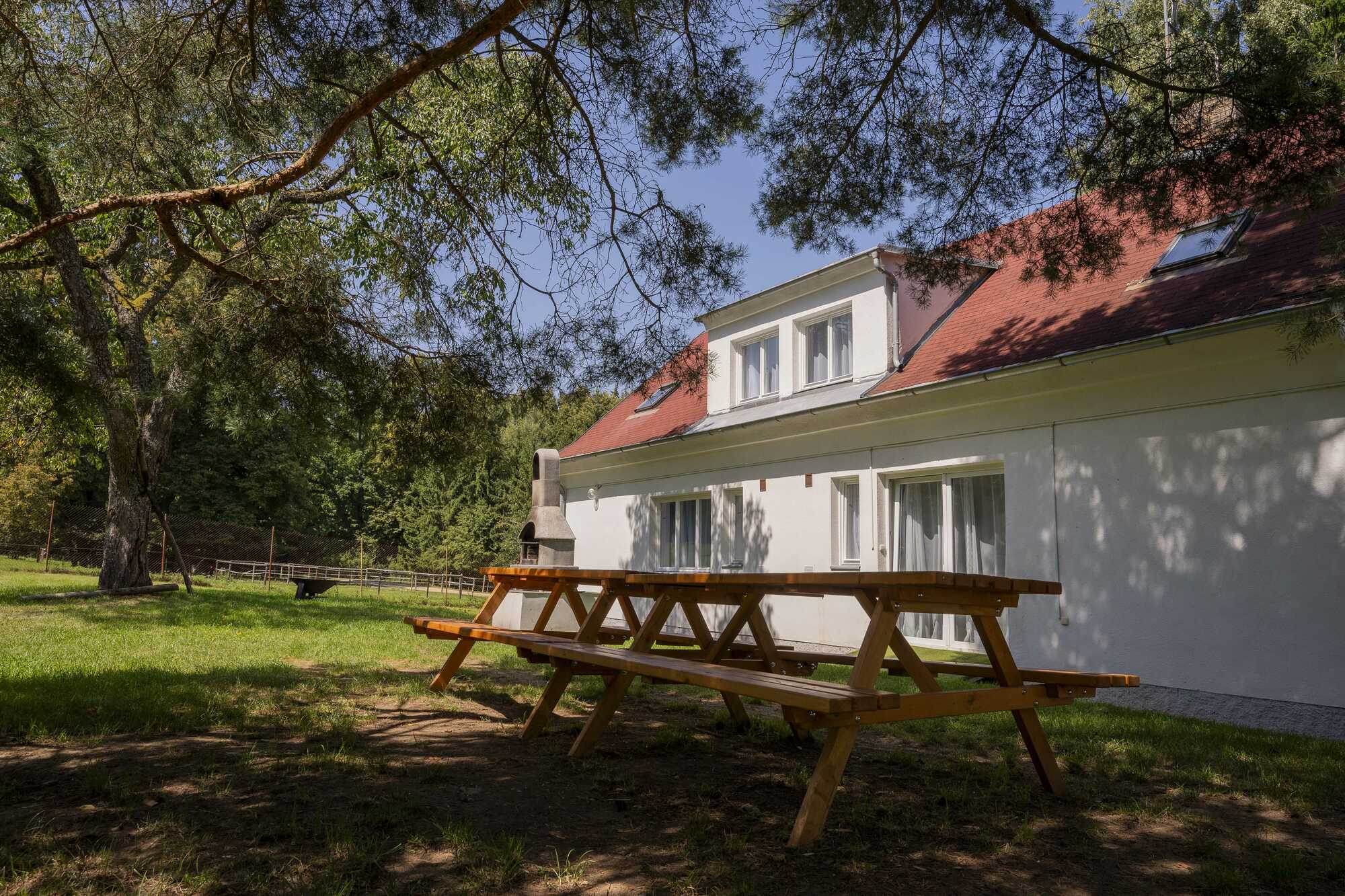 Dvojdomek nabízí prostorné ubytování pro velké skupiny, které si chtějí užít klid aúplné soukromí uprostřed přírody. Celkem je k dispozici 20 pevných lůžek. Součástíareálu je oplocená zahrada, kde si můžete připravit jídlo na venkovním grilu, posedětu ohniště nebo relaxovat v zahradní klubovně.